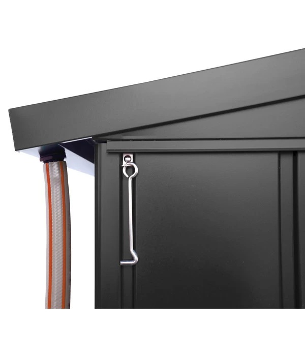 Wer sich ein Gerätehäuschen anschafft, sollte nichts dem Zufall überlassen. Wie gut, dass Sie das Biohort Gerätehaus Europa 3 aufgetan haben! Denn als hochwertiges Markenprodukt vom Spezialisten bietet es Ihnen Vorteile wie ● lebenslange Wartungsfreiheit, eine Konstruktion aus ● feuerverzinktem, polyamid-einbrennlackiertem Stahlblech und eine ● doppelte Blechstärke im Vergleich zu vielen anderen Angeboten. Genau deshalb ist Ihr Biohort Gerätehaus Europa 3 absolut stabil und verträgt eine Schneelast von 150 kg/m². Und bei Biohort ganz selbstverständlich: Sämtliche Scharniere und Schraubverbindungen sind aus rostfreiem Edelstahl. Ein stabiles Häuschen mit 20 Jahren Garantie gegen Korrosion.