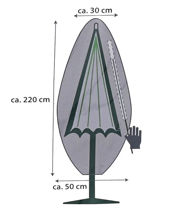 Das hochwertige Polyestermaterial macht die Schirmabdeckung robust und langlebig. Sie ist wasserabweisend, lichtecht und reißfest. Mit ihrer neutralen Farbe fügt sie sich perfekt in jedes Ambiente ein und ist durch ihren großzügigen Schnitt auch für Sonnenschirme bis zu 4 m geeignet. Der beiliegende Handstab dient als nützliche Armverlängerung: Heben Sie die Haube über den geschlossenen Schirm und ziehen Sie anschließend einfach den Reißverschluss zu. So wird das Abdecken des Sonnenschirms zum Kinderspiel. Ist die Schirmhaube gerade nicht im Einsatz, verstauen Sie sie schnell und platzsparend in der dazugehörigen Aufbewahrungstasche mit Tragegriffen. Praktischer geht’s nicht! Bestellen Sie jetzt Ihre Abdeckhaube und schützen Sie ab sofort Ihren wertvollen Sonnenschirm vor Regen und Schmutz.