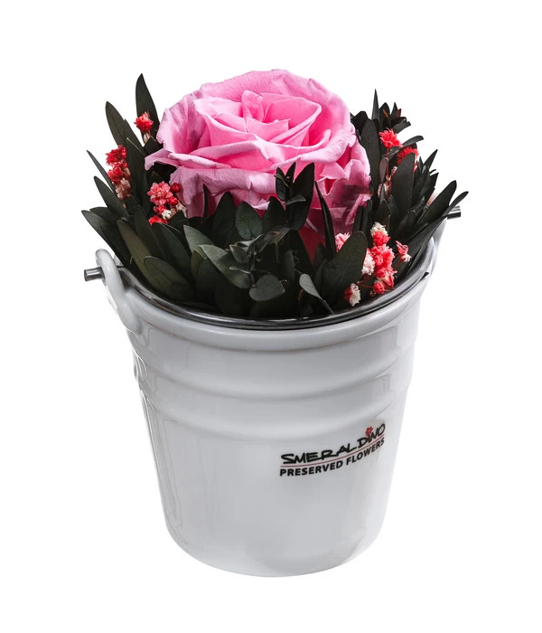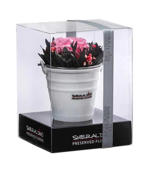 Das Dehner Arrangement mit der Longlife-Rose Ida wird von Hand zusammen mit Eukalyptus und Schleierkraut zu einem zauberhaften Gesteck arrangiert und kommt in einer stilvollen Geschenkbox zu Ihnen. Jedes Detail wurde dabei sorgfältig bedacht, damit Sie eine besondere Zierde erhalten. Begleitet wird das Gesteck von einem weißen Keramik-Eimerchen mit einem Henkel aus Metall, das nicht nur als raffinierter Blickfang dient, sondern auch perfekt mit der Rose harmoniert. So stellt das hinreißende Arrangement einerseits ein schönes Geschenk für Sie selbst dar und andererseits ist es eine wunderbare Möglichkeit, Freude und Glück an Ihre Lieben weiterzugeben. Verschenken Sie mit dieser wunderschönen Komposition auf stilsichere Art zeitlose Freude, die lange währt!