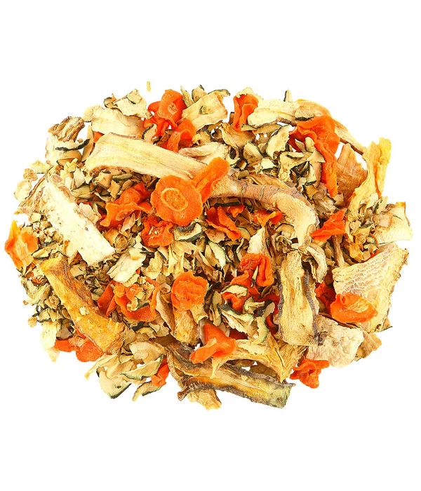 Der heimische Mix aus leckerem Gartengemüse ist ein besonderes Highlight für alle Feinschmecker. Da das Gemüse unseres Best Nature Nagersnacks Gemüse-Beet schonend sonnengereift und getrocknet wurde, bleiben alle natürlichen Aromen der Stücke bestens erhalten. Unser Knabberspaß ist nicht nur lecker sondern auch Verantwortungsbewusst, denn die enthaltenen Karotten sind als Vitamin-A-Spender bekannt und fördern zudem die Sehkraft. Der Best Nature Nagersnack Gemüse-Beet enthält zudem Chicorée und dieser hat einen besonders hohen Gehalt an Rohfaser , welcher sich positiv auf die Verdauung auswirkt. Zudem vermindert Chicorée den Geruch von Kot und Urin. Schmackhaft abgerundet wird unser Best Nature Nagersnack Gemüse-Beet mit den kalorienarmen Gurkenstückchen. Da Ihr Nager die Gemüsestück erst noch Zerlegen und Hamstern muss, ist hier für die extra Portion Abwechslung und Unterhaltung gesorgt. Am besten Sie streuen Best Nature Nagersnack Gemüse-Beet einfach im Nagerheim aus, denn so muss erst noch nach den Stücken gesucht werden und so ist nochmals für Beschäftigung gesorgt und Ihr Liebling langweilt sich nicht. Da die getrockneten Stücke erst noch zerlegt werden müssen wird gleichzeitig der so wichtige Zahnabrieb auf natürliche Weise unterstützt. Unser Best Nature Nagersnack Gemüse-Beet ist also nicht nur lecker sondern auch noch Gesund und daher das ideale Leckerchen.