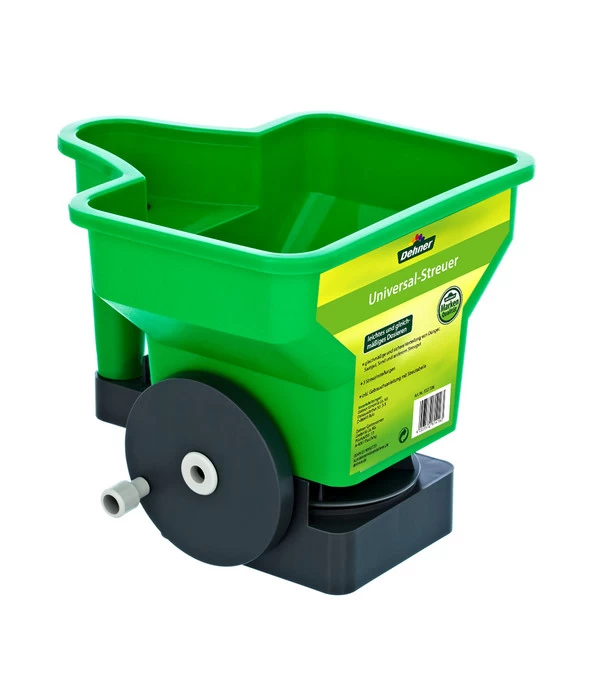 Gute Gartengeräte erleichtern Ihnen die Arbeit enorm – so wie der Düngerstreuer von Dehner in Markenqualität. Das Gerät aus stabilem Kunststoff bringt Streugut gleichmäßig und leicht dosierbar aus, ob Dünger, Saatgut oder auch Sand. Sie können zwischen drei Voreinstellungen zum asymmetrischen Ausbringen des Streugutes wählen, eine genaue Streuguttabelle zeigt Ihnen die jeweils richtige Menge an. Der Streuer funktioniert über eine Handkurbel und eignet sich daher besonders gut für enge und verwinkelte Stellen.