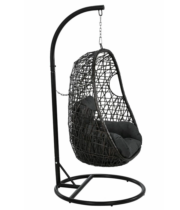 Der Dehner Hängesessel ‘Hawaii‘ hat ein massives Gestell aus pulverbeschichtetem, rostfreiem Stahl, das für die nötige Stabilität und Sicherheit sorgt; der Sessel besteht aus hochwertigem Kunststoffgeflecht. Dabei handelt es sich um moderne, elastische Kunstfasern, die wie echtes Rattan aufwändig von Hand geflochten werden. Das Kunststoffgeflecht ist nicht nur strapazierfähig, sondern auch wetter– und UV-beständig. Sie können Ihren Dehner Hängesessel ‘Hawaii‘ also unbesorgt unter freiem Himmel stehen lassen. Außerdem ist das Kunststoffgeflecht pflegeleicht. Beste Voraussetzungen also, dass Ihnen der Schwebesessel keinerlei Stress, sondern nur viele Jahre Freude und Entspannung bereiten wird.