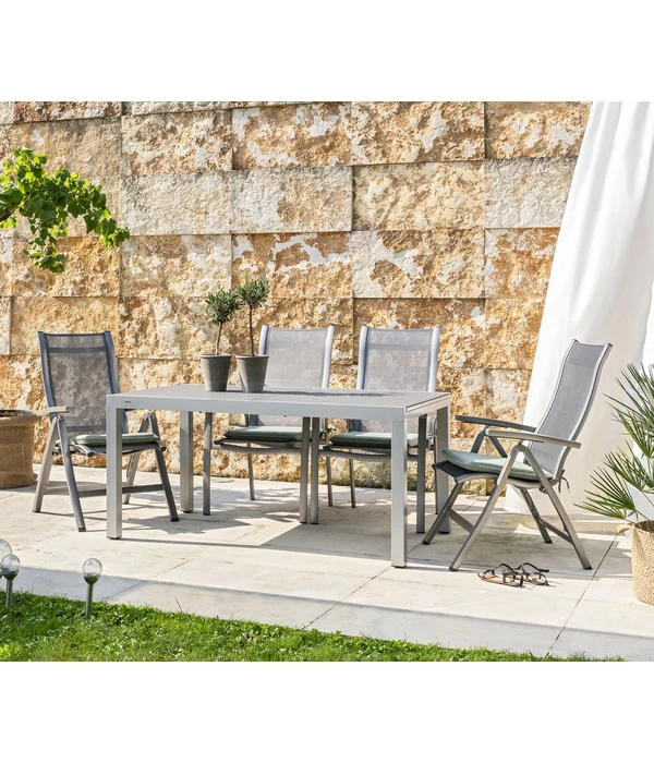 Ein Terrassenstuhl in schlichtem Design, ergänzt mit einem sanften Schwung an den richtigen Stellen; dazu eine zart durchscheinende Bespannung und ein mattsilberfarbenes Gestell – der Dehner Klappsessel Chicago überzeugt auf allen Ebenen. Und damit Sie lange Freude an Ihrer neuen Entdeckung haben, bietet der Dehner Klappsessel Chicago solide Qualität. Denn sein angenehm leichtes Aluminiumgestell ist absolut stabil und witterungsbeständig. Und so zart seine hochwertige Textilene-Bespannung auch wirken mag, ist sie dennoch äußerst strapazierfähig, witterungsbeständig und schnelltrocknend. Das ist genau Ihr Stil? Dann setzen Sie jetzt auf den Dehner Klappsessel Chicago und genießen Sie viele Jahre lang hochwertige und hoch attraktive Sitzmöbel auf Ihrer Terrasse!