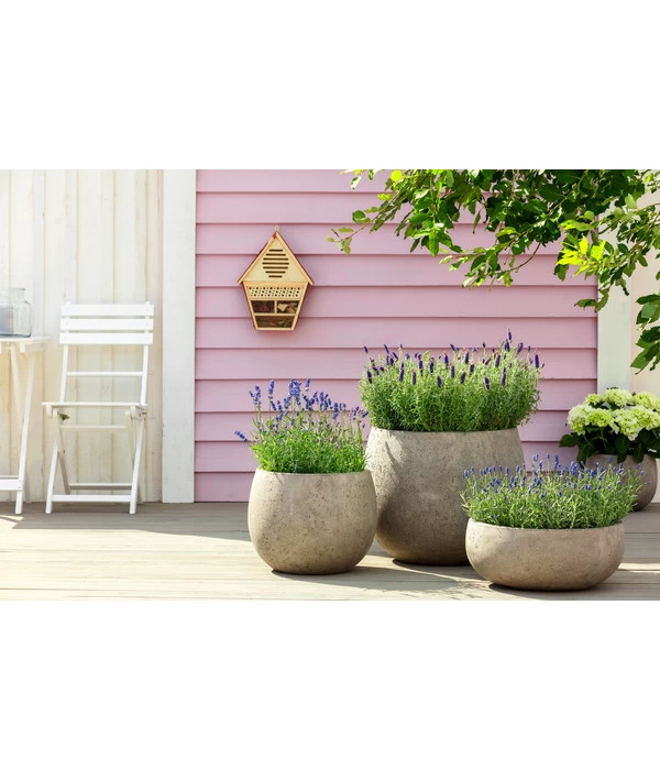 Dank ihrer hohen UV- und Wetterbeständigkeit ist die Schale besonders robust und ist zu jeder Jahreszeit ein echter Hingucker. Wenn Sie altert, setzt sie eine edle Patina an, die ihr einen leicht verwitterten Eindruck verleiht und sie nahezu mit der Umgebung verschmelzen lässt. So kommen Ihre Pflanzen perfekt zur Geltung! Durch ihr geringes Gewicht ist sie kinderleicht zu bewegen und kann immer wieder neu arrangiert werden. Ihrer Fantasie bei der Gestaltung sind keine Grenzen gesetzt.