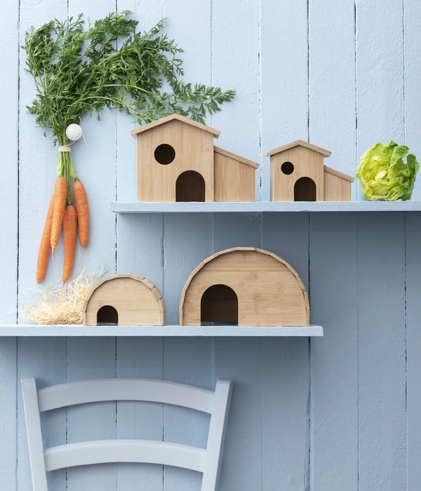 Die Version S ist für Mäuse und Zwerghamster ideal geeignet, in der Größe M finden auch etwas größere Nagetiere wie Gold- und Teddyhamster einen überaus gemütlichen Rückzugsort. So kommt im Gehege bestimmt keine Langeweile auf. Ob als geschützter Schlafplatz, zum Entspannen oder als tolle Versteckmöglichkeit, Ihr kleiner flauschiger Mitbewohner wird bestimmt seine helle Freude an dem Neuzugang in seinem Käfig haben. Bestellen Sie am besten gleich das hübsche Nagerhaus Jorgos aus Bambus, das mit seiner zeitgemäßen Optik ein dekorativer Hingucker für Mensch und Tier ist.