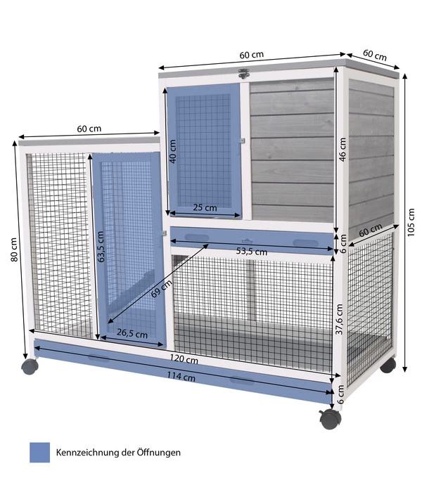 Sie halten Mäuse, Hamster, Meerschweinchen oder andere Kleintiere in Ihrer Wohnung und lieben es, das lustige Treiben der kleinen Tierchen zu beobachten? Mit dem Nagerheim Janus von Dehner Lieblinge machen Sie sich selbst und Ihren Lieblingen ein echtes Geschenk. Die pulverbeschichteten Gitterstäbe, die einen Abstand von 2,5 Zentimetern zueinander haben, gestatten Ihnen eine gute und freie Sicht. Darüber hinaus haben Ihre Nagetiere dort auf zwei mit einer Leiter verbundenen Ebene viel Platz zum Laufen, Spielen und Entdecken. Durch die herausziehbaren Streuwannen, Zwei-Türen-System und dem aufklappbaren Dach ist die Reinigung für Sie ein echtes Kinderspiel.
