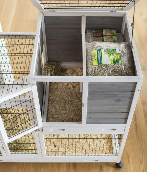Das dekorative Indoor-Kleintierheim überzeugt mit seinen robusten und natürlichen Materialien wie dem stabilen Tannenholz und den stabilen Metallgittern. Dabei haben Sie die völlige Gestaltungsfreiheit, denn das Nagerheim Janus steht bewegbar auf bremsbaren Rollen und lässt sich damit ganz einfach und flexibel überall im Raum aufstellen. Zögern Sie nicht länger, beschenken Sie sich selbst und Ihre kleinen Lieblinge und bestellen Sie noch heute das Nagerheim Janus von Dehner Lieblinge direkt zu sich nach Hause.