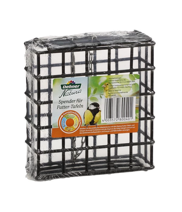 Sie wollen gerne Ihre Gartenvögel mit einem leckeren Futter verwöhnen? Mit dem Dehner Natura Futtertafel-Set mit Spender, erhalten Sie je zwei Futtertafeln mit Beeren, mit Erdnüssen und mit Insekten. Außerdem im Set enthalten, ist das passende Futterkörbchen. Egal welches Fettfutter Sie verwenden, in jeder der Dehner Futtertafeln steckt die extra Portion Energie und das in bester Kombination. Entweder mit schmackhaften Beeren, ölhaltigen Erdnüssen oder proteinreichen Insekten – hier ist jede Wahl ein Volltreffer. Sie werden erstaunt sein, wie sich Ihre gefiederten Freunde auf dieses Futter stürzen – vor allem Körner- und Weichfutterfresser. Die Dehner Natura Futtertafeln können das ganze Jahr über gefüttert werden, aber vor allem in den kalten Wintermonaten freuen sich Wildvögel über diese Delikatesse.
