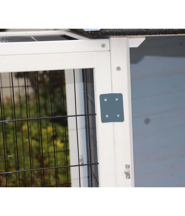 Bestimmt ist Ihnen am Dehner Vogelvolieren-Set Santorini gleich die attraktive Farbgebung aus Weiß mit Hellblau aufgefallen, die frisch und sommerlich wirkt und der schicke Rahmen für Ihre attraktiven Vögel ist. Das Gehege wie die Voliere haben einen stabilen Rahmen aus Holz, das Gitter ist dank einer Pulverbeschichtung witterungsbeständig. Das Dach der Voliere ist mit wetterfestem Bitumen gedeckt, im Inneren befindet sich bereits eine Schwungsitzstange aus Holz. Was Sie ebenfalls am Dehner Vogelvolieren-Set Santorini schätzen werden: Die vielen großen und kleinen Türen an der Voliere bieten Ihnen den optimalen Zugang für Reinigungsarbeiten und Co.
