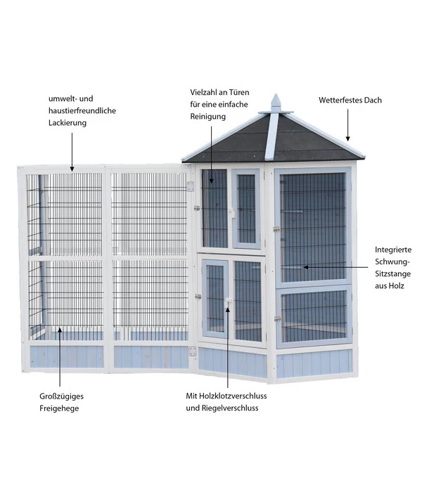 Voliere mit wetterfestem Dach, Gehege pulverbeschichteter Draht