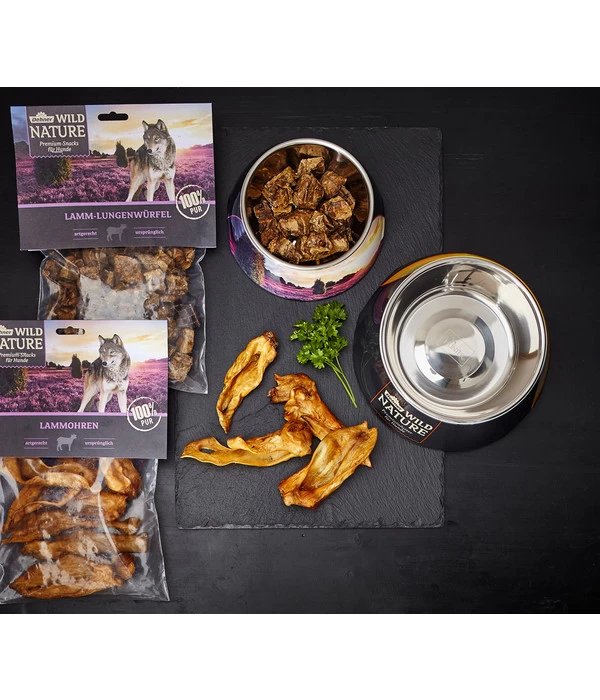 Mit dem Dehner Wild Nature Lamm-Lungenwürfel bekommen Sie einen Hundesnack, der sich an die ursprüngliche Ernährung des Wolfes anlehnt, denn die Nahrungsansprüche und der Aufbau des Verdauungssystems bei Wolf und Hund zeigen trotz Domestizierung noch immer eindeutige Parallelen. Der schonend getrocknete Premium Snack für Hunde aus 100 % Lammlunge überzeugt Ihren geliebten Vierbeiner mit einem tollen Geschmack und ist zudem noch fettarm. Ein natürlicher Gaumenschmaus ohne Reue! Das feine Hundeleckerli vom Lamm ist als Single Protein sehr gut verträglich und ein idealer Belohnungshappen oder einfach mal für zwischendurch. Die köstlichen, proteinreichen Dehner Wild Nature Lamm-Lungenwürfel sind gluten- und getreidefrei und für ernährungssensible Hunde und Allergiker eine tolle Wahl. Natürlich sind Dehner Wild Nature Snacks für Hunde vollkommen frei von Zusatzstoffen. Die Lamm-Lungenwürfel sind weich und Sie können sie daher auch jüngeren und älteren Hunden anbieten. Eine gesunde Abwechslung auf dem Snack-Speiseplan Ihres Hundes für eine artgerechte und ursprüngliche Ernährung in Premium-Qualität.