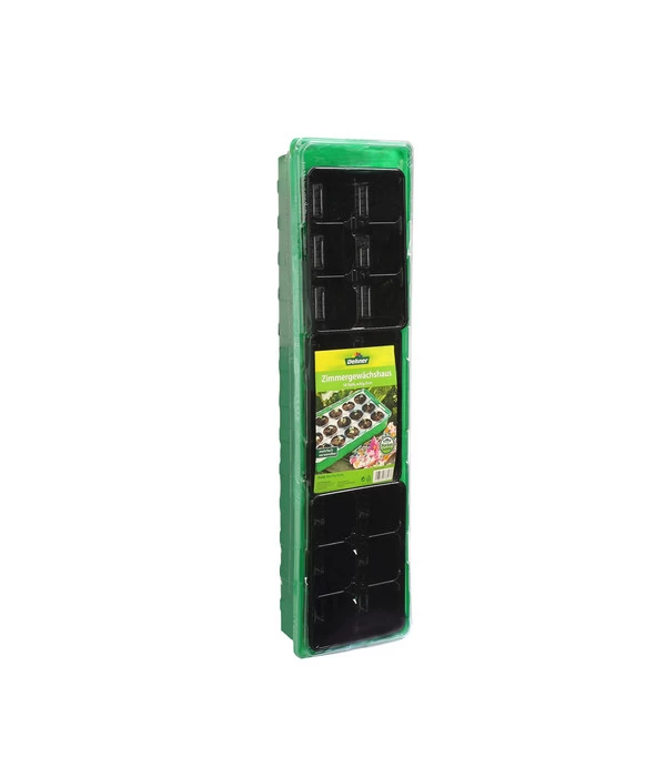 Die Aufzucht von Pflanzen ist nicht mehr nur den Profigärtnern vorbehalten. Mit kleinen Helfern und den richtigen Utensilien kann jeder Hobbygärtner tolle Ergebnisse mit der eigenen Aufzucht von Pflänzchen erzielen. Sie benötigen nicht einmal ein großes Treibhaus im Garten. Das Dehner Zimmergewächshaus Frans ist ideal zur unkomplizierten Aufzucht in der Wohnung oder im Haus. Gewächshäuser schaffen spezielle Bedingungen, die für eine Anzucht von Jungpflanzen wichtig sind. Das 54 x 15 x 12 cm große Gewächshaus aus Kunststoff bietet Platz für 18 Töpfchen und ist dank seiner kompakten Form ganz einfach auf der Fensterbank aufzustellen. Da Jungpflanzen viel Licht und Wärme benötigen, ist der Fenstersims der optimale Standort zur Anzucht. Die praktischen Kunststoffeinsätze sind mit dabei und eigenen sich zur Aussaat für Sämlinge sowie für Stecklinge. Egal ob für frische Kräuter oder Salat- und Gemüsepflanzen, das Dehner Zimmergewächshaus kann individuell und flexibel genutzt werden.