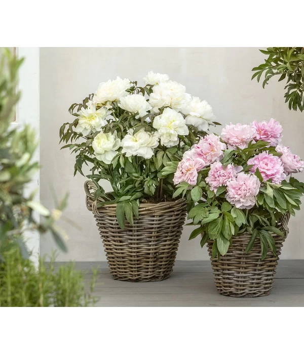China ist die Heimat der Pfingstrosen, wo sie schon seit über 1000 Jahren gezüchtet werden. Die Edel-Pfingstrose wächst straffer und höher als unsere heimischen Arten und hat nicht nur ein gesundes, kräftiges Blattwerk, manche zeigen sogar einen rötlichen Austrieb und setzen mit einer schönen Herbstfärbung letzte Farbakzente ins Beet. Und dazu beschenkt sie uns mit einem langanhaltenden und überreichen Blütenflor, denn sie hat bis zu 6 Knospen pro Stiel, die sie nach und nach öffnet. Und auch der Farbenreichtum der Edel-Pfingstrose ist spektakulär, denn es gibt sie in Schneeweiß (‚Shirley Temple‘), zart Rosa (‚Sarah Bernard‘), intensiv Rot (‚Karl Rosenfield‘) und Zweifarbig (‚Bowl of Love‘). Und um allem die Krone aufzusetzen, verwöhnen sie mit einem zarten, die ‚Shirley Temple‘ mit einem intensiven Duft. Brauchen Sie noch mehr Gründe, um gleich eine dieser Blütenschönheiten zu sich einzuladen? Bitte sehr: Die Edel-Pfingstrose ist auch für ihren unkomplizierten Charakter berühmt. Also, welche der vier Grazien darf es sein? Oder lieber gleich alle vier?