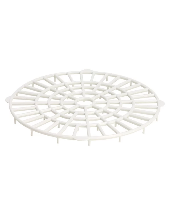 Um die Temperaturen beim Einkochen zu überstehen, muss das Material für Ihren Einlegerost widerstandsfähig und beständig gegen Hitze sein. Diesem können Sie Ihr Vertrauen schenken, denn er ist aus hochwertigem Kunststoff der für diesen Zweck perfekt ist. Unser Tipp: schaffen Sie sich am besten gleich zwei an, denn auch ein Einlegerost ist einmal unauffindbar. Und wenn Sie größere Mengen einkochen wollen, dann können Sie mehrere Einkochtöpfe gleichzeitig zum Einsatz bringen. Der in schlichtem Weiß gehaltene Einlegerost benötigt wenig Raum in Ihren Schränken und ist leicht zu pflegen. Der Einlegerost hat einen Durchmesser, mit dem er in alle Einkochautomaten passt. Und ganz wichtig: der Einlegerost ist für alle Herdarten unbedingt erforderlich.