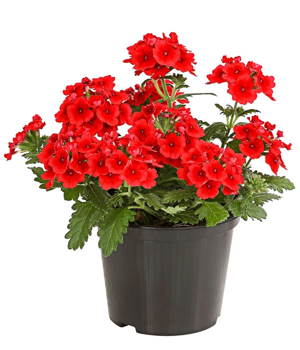 Eine reiche Blüte entwickeln unsere aufrecht wachsenden Verbenen in jeden Fall, ob im Beet oder als Kombinationspartner im Balkonkasten. Die Verbene, auch Eisenkraut genannt, trägt ihre Blüten über stark gezähntem Laub, das stark an das einer Minze erinnert. Doch das Eisenkraut macht nicht nur durch kräftige Farben von sich reden, ebenso ihre zarten Farbtöne, wie das weiche Lavendel oder dem feinem Apricot, stechen ins Auge. Zudem überzeugen sie mit hoher Wetterfestigkeit, besonders gegenüber Regen. Mittlerweile gehört die Verbene, ebenso wie Geranien, zu den Klassikern unter den Balkonblumen, welche den ganzen Sommer über ihre kleinen Blüten, die in Büscheln zusammen stehen.
