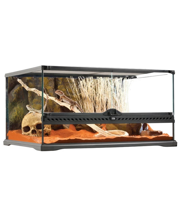 Im mittelgroßen Format bietet die Exo Terra® Terrarium Kombination 60×45 cm einen optimalen Lebensraum für Ihre Reptilien und Amphibien. Denn enthalten ist alles, was Sie brauchen, um Ihren Tieren ein echtes Wohlfühl-Ambiente einzurichten, ein wasserdichtes Vollglasterrarium die passende Lampenabdeckung und ein Unterschrank, der sicheren Stand und Stauraum bietet.
