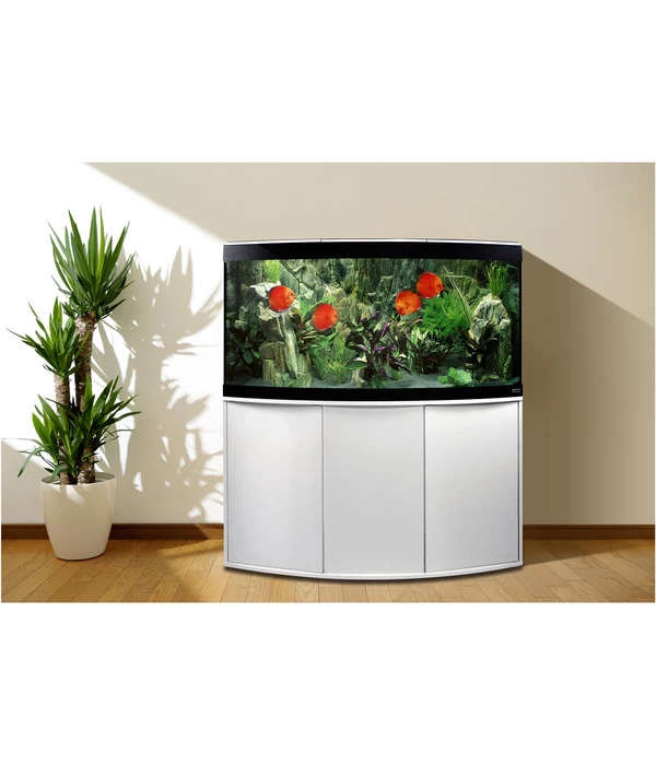 Natürlich spielt das Innere Ihres Aquariums – die naturnahe Deko, die leuchtenden Pflanzen und die farbenfrohen Fische und Garnelen – die dekorative Hauptrolle Ihrer faszinierenden Unterwasserwelt, doch das Design des Aquariums ist das Tüpfelchen auf dem „i“, das für den ultimativen Wow-Effekt sorgt. Durch die markant gebogene Glasfront erlaubt die FLUVAL® Aquarium Kombination Vicenza 260 einen fantastischen Panoramablick in Ihr Süßwasser-Arrangement, in dem sich vielleicht farbenprächtige Zwergbuntbarsche aus Südamerika tummeln oder interessant gezeichnete Regenbogenfische aus Südostasien. Sparen Sie sich die Reise und den Tauchurlaub in der Ferne und gönnen Sie sich die Aquariumkombination FLUVAL® Vicenza mit einem Fassungsvermögen mit 260 Liter!