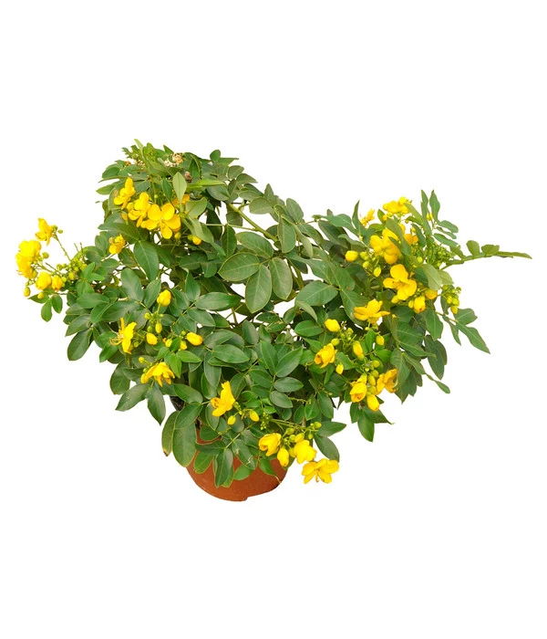 Etwas verwunderlich ist es schon, dass die Gewürzrinde noch ein rarer Gast auf hiesige Terrassen und Balkone ist, denn eine Kübelpflanze mit solchungebremster Blühfreude hat man im Sommer gerne um sich herum. Die Gewürzinde, die vielen noch unter ihrem früheren botanischen Namen Cassia, zu Deutsch Kassie, bekannt ist, entwickelt von Mai bis Oktober leuchtend, goldgelbe Blütentrauben. Dabei tragen auch die paarig, gefiederten Blätter der Kassie zum Zierwert der Kübelpflanze bei. An einem günstigen Standort, bei guter Pflege und richtiger Überwinterung kann sich die Gewürzrinde zu einem imposanten, ca. zwei Meter hohen, Strauch entwickeln. Als Dank wird Ihnen die Gewürzrinde von Dehner ein treuer Begleiter sein, denn diese Kübelpflanze zählt zu einer der robustesten ihrer Art.
