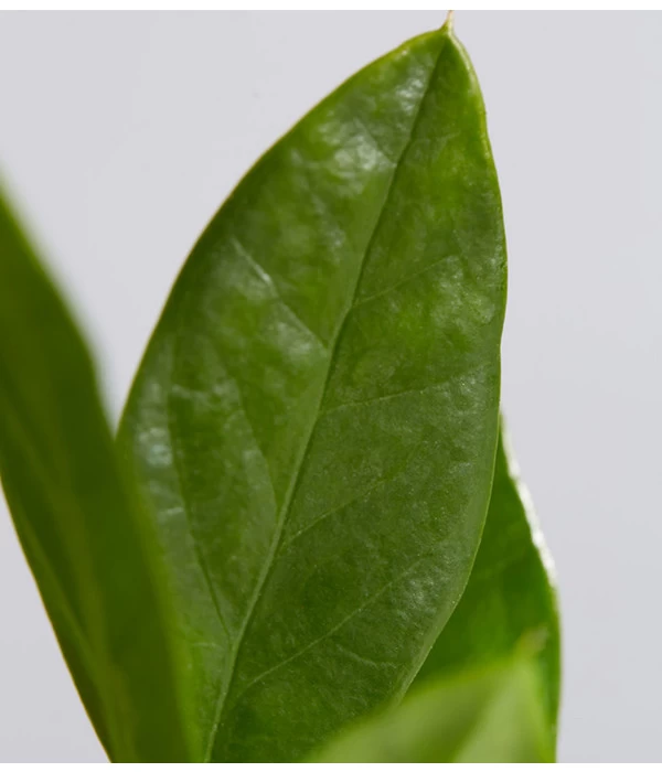 Die Glücksfeder stammt ursprünglich aus Ostafrika. Obwohl sie erst seit Mitte der 90er Jahre im Handel erhältlich ist, zählt sie schon jetzt zu den beliebtesten Zimmerpflanzen. Das hat auch seinen Grund, denn die Glücksfeder erweist sich als extrem robust und genügsam, selbst unerfahrene Hobbygärtner werden keine Probleme mit ihr haben. Botanisch gesehen gehört die Zamioculcas, oftmals auch nur Zamie genannt, zu den Aronstabgewächsen (Araceae). Ähnlich wie andere Sukkulenten speichert die Pflanze Wasserreserven in ihren Blatttrieben, insbesondere in der verdickten Basis. Aus dem knollenartigen Wurzelstock (Rhizom) entspringen Sprosse, aus denen sich eirunde Fiederblätter entwickeln. Diese Einzelblätter sind dunkelgrün, ledrig und glänzend. Die Pflanze wird in der Regel bis zu einen Meter hoch, an einem idealen Standort und bei guter Pflege auch gerne größer.