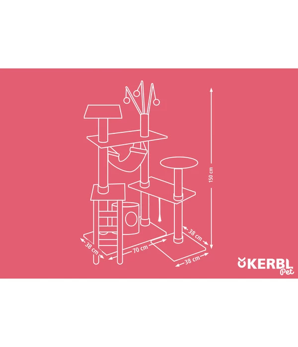Sie wollen Ihrem Liebling nicht nur einen Kratzbaum bieten, sondern ein wahres Paradies zur Verfügung stellen? Der Kratzbaum Creativ Adventure von KERBL wird Ihren Stubentiger in Begeisterung versetzen. Auf diesem Accessoire mit sechs Ebenen kann sich Ihre Katze austoben, mit den kleinen Kugeln spielen oder ihre Krallen schärfen. Auch zum entspannten Beobachten der Umgebung findet Ihr Haustier bestimmt ein Plätzchen. Für das Erholungsschläfchen sind die Liegefläche und die gemütliche Höhle mit kuscheligem Plüsch ideal. Ihre Katze wird den Kratzbaum Creativ Adventure bestimmt schnell in Beschlag nehmen und sich gerne darin vergnügen.