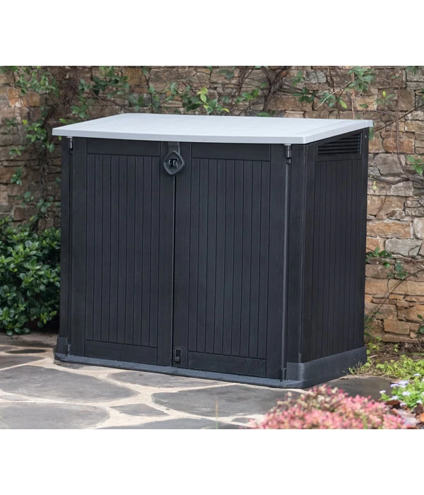 Weil die Keter Aufbewahrungsbox Store it Midi mit vorderseitigen Türen ausgestattet ist, können Sie die Tonnen zur Abholung bequem herausholen und anschließend wieder hineinstellen. Natürlich lässt sich die attraktive Konstruktion auch zur Aufbewahrung von Gartengeräten, dem Rasenmäher oder Pooltechnik verwenden. Wenn Sie den Inhalt der Box vor Diebstahl schützen möchten, bietet es sich an, sie mit einem Vorhängeschloss zu sichern. Holen Sie sich Ihre Keter Aufbewahrungsbox Store it Midi, um Ihren Außenbereich mit einem vielseitig nutzbaren, funktionalen Behältnis zu verschönern!
