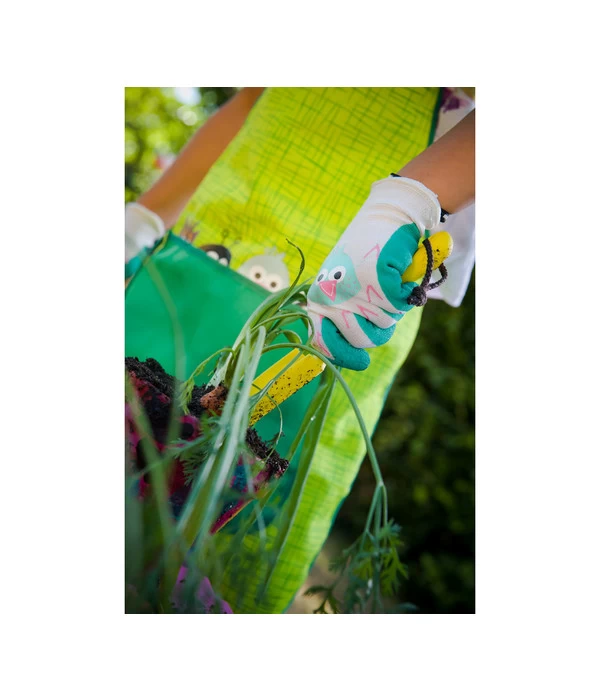 Der Kinderhandschuh Margot begeistert mit seinem süßen Vogelmotiv, das Groß und Klein ein Lächeln ins Gesicht zaubert. Doch das ist nicht alles, denn das Modell punktet auch im Hinblick auf die Qualität vollauf. Es besteht aus Kunststoff sowie Latex und ist daher ausgesprochen robust und langlebig. Außerdem wurde das Accessoire an der Handfläche speziell beschichtet. Dadurch ist es an dieser Stelle wasserdicht und bietet darüber hinaus einen optimalen Grip für das Halten von kleinen Schaufeln, Besen, Gießkannen und anderen Werkzeugen. Der Handschuh lässt sich ganz einfach mit Wasser und Seife waschen. Nicht zuletzt punktet das nahtlos gearbeitete Modell mit einem hohen Tragekomfort. Damit die Kleinen den Handschuh nicht unbeabsichtigt verlieren, verfügt er zudem über praktische Riemen. Bestellen Sie den Kinderhandschuh Margot am besten sofort!