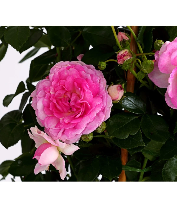 Diese Rosen wollen hochhinaus. Mit dieser Auswahl an robusten Kletterrosen ist für jeden Geschmack eine passende Sorte dabei, die Ihren Garten mit den großblumigen Blüten von Juni bis September verzaubern. Möchten Sie eine Rose in cremeweiß mit pinken Rand? Dann greifen Sie zur Sorte ‚Antike 89®‘. Lieben Sie Ihre Rosen in einem sattem Rot, dann ist die Sorte ‚Florentina®‘ genau richtig. Sie wird bis zu 3 Meter und wurde 2016 mit dem Prädikat ADR-Rose ausgezeichnet. Oder soll es etwas verspielter sein? So greifen Sie zur Rose ‚Moonlight®‘. Das klare Gelb der Blüte verwandelt sich im Laufe der Zeit in ein zartes Rosa und lässt so nie Langeweile am Blütenstrauch aufkommen. Unsere Auswahl hat aber ein klassisches Weiß zu bieten – dafür sorgt die bewährte Sorte ‚Ilse Kron Superior®‘, die zudem noch leicht duftet. Die letzte Sorte in dieser Reihe „robuste Kletterrosen“ ist die Rose Jasmina®‘. Eine ausgezeichnete ADR-Rose aus dem Jahr 2007, die neben ihrer enormen Wuchshöhe von bis zu 3 Metern einen süßlichen Apfelduft verbreitet, der an warmen Sonnentagen Ihren Garten in eine Wolke aus Roseduft hüllt.