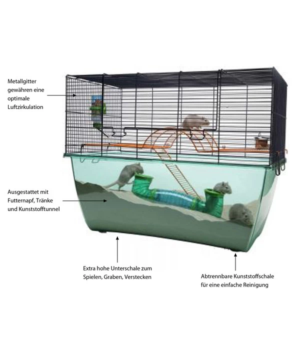 Auch die kleinsten der kleinen wollen einen schönen Käfig. Mit dem SAVIC Nagerheim Habitat XL bieten Sie Ihren Mäusen ein extra großes und stabiles Zuhause. Dank der extra hohen, transparenten Unterschale können Sie genügend Einstreu einfüllen und somit bieten Sie Ihrem Tier eine optimale Buddelmöglichkeit.
