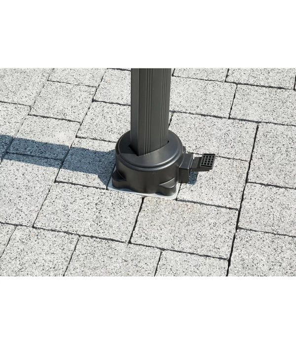 Ärgerliche Stolperfallen gehören damit der Vergangenheit an: Die Schneider Schirme Universal-Bodenplatte für Gartenschirme ist die ideale Vorrichtung für eine besonders sichere Befestigung von Ampelschirmen. Geeignet zum Einbetonieren, kann die Schneider Schirme Universal-Bodenplatte für Gartenschirme so völlig ebenerdig eingepasst werden, dass kein sperriger Ständer mehr im Weg ist. Die Gesamthöhe der Schneider Schirme Universal-Bodenplatte für Gartenschirme beträgt ca. 42 cm, die Montageplatte selbst misst 16 x 16 cm. Sie ist bereits mit Bohrlöchern versehen, sodass Sie Ihren Sonnenschirm von Schneider Schirme mit seinem Drehteller oder Standrohr befestigen können. Die Schneider Schirme Universal-Bodenplatte für Gartenschirme ist aus feuerverzinktem Material, deswegen ist sie verrottungsfest und witterungsbeständig.