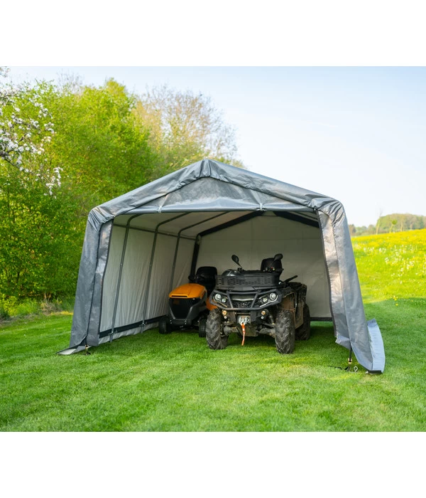 Sind Sie auf der Suche nach einer smarten Garagenlösung für diverse Fahrzeuge, Gartengeräte und für andere Gegenstände dieser Art? Die Shelter Logic Garage in-a-Box stellt in diesem Fall eine ausgesprochen interessante Option für Sie dar. Platz bietet dieses Modell zum Beispiel für Autos, Motorräder und Anhänger. Aber auch Rasenmähertraktoren und ähnliche Gerätschaften lassen sich hier wunderbar unterbringen. Für den saisonalen Gebrauch ist die Garage in-a-Box von Shelter Logic geradezu prädestiniert, da sie sich schnell aufbauen und auch wieder zügig abbauen lässt.