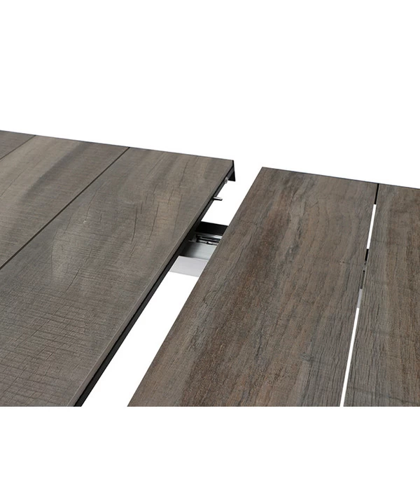 Die Tischplatte wird Sie durch eine sehr elegante und moderne Optik überzeugen. Diese besteht aus hochwertiger Keramik in naturgrauer Holzoptik und erzeugt einen natürlichen Eindruck. Das pulverbeschichtete Aluminiumgestell lässt Sie keinen Moment an der Langlebigkeit des Tisches zweifeln. Zusätzlich besitzt der Siena Garden Ausziehtisch Sincro Fußkappen aus schwarzem Kunststoff, die Ihren Boden vor unschönen Kratzern beim Verschieben schützen. Die ganzen Vorteile des Ausziehtisches sprechen für sich und werden Sie überzeugen. Bestellen Sie jetzt den Siena Garden Ausziehtisch Sincro und planen Sie gleich Ihr nächstes Gartenfest der Spitzenklasse.