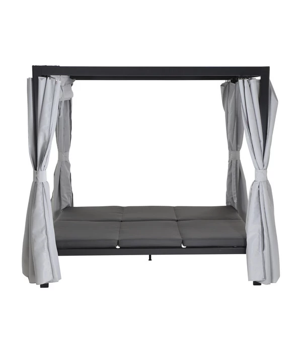 Auf Ihrer neuen Outdoor-Relaxinsel werden Sie sich nicht nur wohlfühlen, weil alles so gemütlich und komfortabel ist. Auch das Design wird Sie schlichtweg begeistern. Ein himmlisches Doppelbett für draußen, das von langen Vorhängen umspielt wird und Ihre Terrasse in ein kleines Wellness-Ressort verwandelt. Einfach traumhaft! Ihr Siena Garden Loungebett Waikiki überzeugt aber auch auf der qualitativen Ebene. Mit einem stabilen Aluminiumgestell, das pulverbeschichtet ist und damit jeder Witterung trotzt. Und mit Vorhängen und Polsterüberzügen, die aus attraktivem, robustem Polyestergewebe gefertigt wurden.