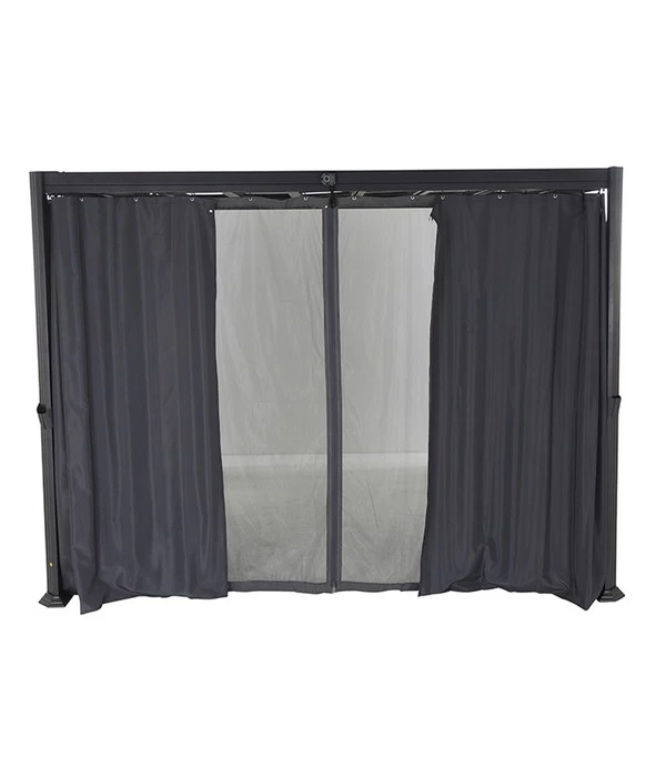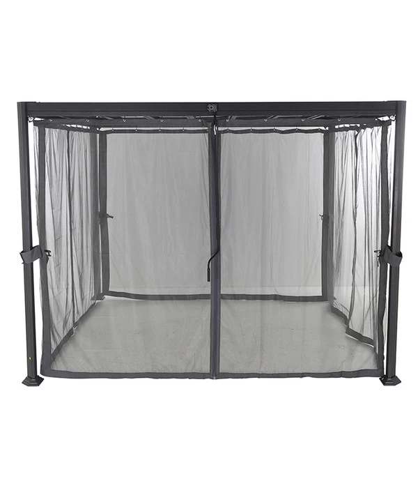 Ganz gemütlich unter Ihrem Pavillon den Tag ausklingen lassen? Manchmal schwierig, wenn man durch lästige Stechmücken gestört wird. Mit diesem Moskitonetz passend für den Pavillon Florenz der Marke Siena Garden steht Ihrem verdienten Feierabend nichts mehr im Wege. Zum einfachen Anbringen befinden sich Ösen zum Einhängen am Netz, so können Sie ganz schnell alle vier Seitenteile zum Schließen an Ihren Pavillon befestigen. Zum heraus oder hinein Gehen kann der Insekten-Schutz entweder mittig mit Reißverschlüssen auf jeder Seite geöffnet werden oder Sie binden die Vorhänge dekorativ um die Pfosten. Durch die transparente Fläche kommt trotzdem viel Licht ins Innere des Pavillons, sodass Sie gemeinsam mit Ihren Freunden oder Familie gut geschützt Zeit verbringen können.
