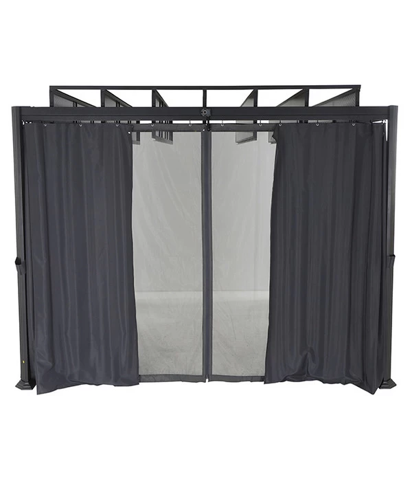 Sie beisitzen bereits Seitenteile an Ihrem Pavillon Florenz oder möchten die Ausgedienten ersetzen? Mit diesem Set aus vier passenden Teilen schaffen Sie sich mehr privaten Bereich in Ihrem Garten. Die Wände bestehen aus pflegeleichtem Polyester und sind dadurch sehr robust und witterungsbeständig. Durch Ösen mit Hacken an den Seitenteilen sind diese auch im Nu an Ihrem Pavillon befestigt. Zum Öffnen können die Wände dekorativ um die Pfosten gebunden werden. Alternativ besitzt jede Seite einen Reißverschluss, der Sie schnell ins Innere gelangen lässt. Freuen Sie sich auf ausgelassene Abende unter Ihrem Pavillon Florenz.