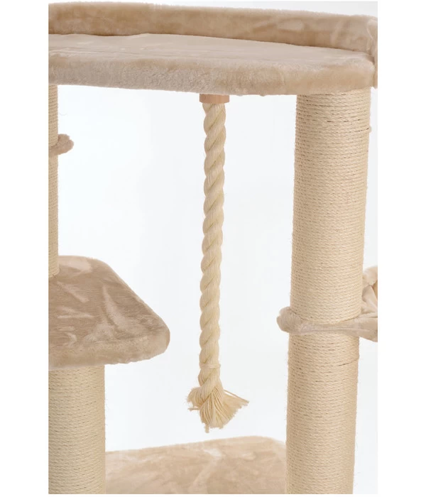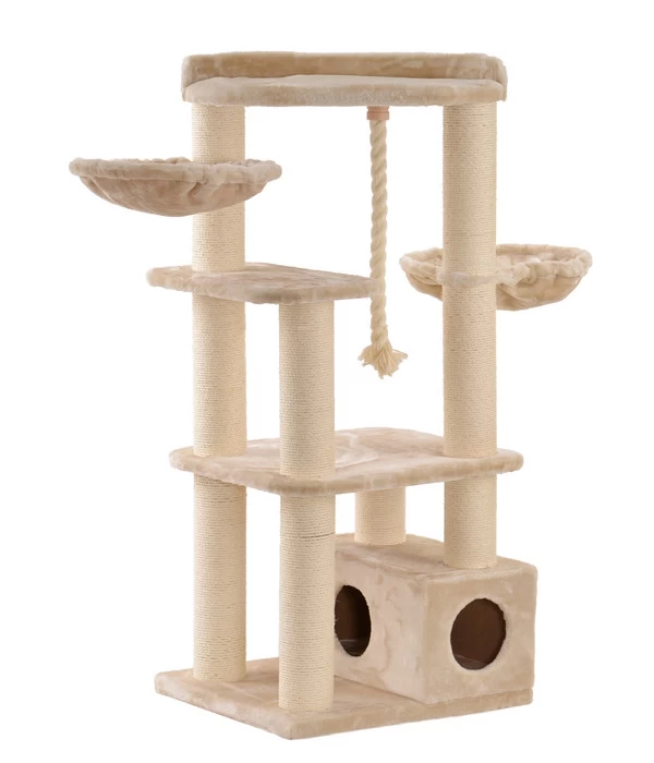 An den extra dicken Holmen (12 cm Ø) geschickt hochklettern, dann ein bisschen das Seil jagen, anschließend auf einer der offenen Liegeflächen oder in einer der Hängemulden entspannen. Oder lieber zwischendurch ein bisschen die Krallen an den robusten Sisal-Stämmen schärfen, diese an dem Seil ausprobieren und dann für ein Weilchen in der Höhle verschwinden? Damit sich Ihre Samtpfote auf den verschiedenen Schlaf- und Liegeflächen so richtig wohlfühlt, sind diese mit einem weichen, angenehmen Plüschbezug versehen. Mit dem SILVIO design Kratzbaum Enya XXL bieten Sie Ihrer Katze einen aufregenden Abenteuerspielplatz, mit dem sie sich lange beschäftigen wird.