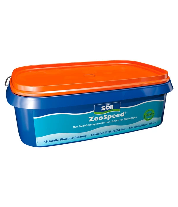 Das Söll ZeoSpeed ist ein reines Naturprodukt, da es aus dem Mineral Zeolith besteht. Söll ZeoSpeed bindet blitzschnell Phosphat, welche die Grundlage für Algen sind. So wird der Algenwuchs geblockt und Ihr Teich somit verschont. Zudem entfernt Söll ZeoSpeed Ammonium aus dem Wasser. Um die Wirkung des Zeolith zu erhöhen, wird bei ZeoSpeed das spezielle IP60-Verfahren eingesetzt. So wird ein Bindevermögen für Phosphat erzielt und der Abbau von Stickstoffverbindungen durch Aktivsauerstoff erhöht. Mit Söll ZeoSpeed gibt es kein Phosphat und somit auch keinen Algensalat.
