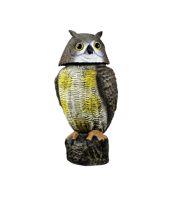 Diese Wind- Wackeleule vertreibt ungebetene Gäste (störende Vögel) sehr effektiv aus dem Garten. Sie bewegt den Kopf im Wind und wirkt lebendig durch ihre reflektierende Augen.