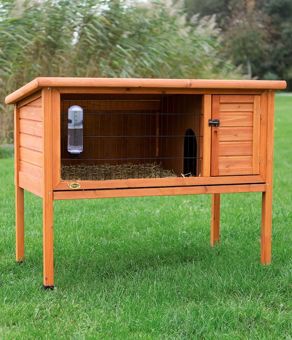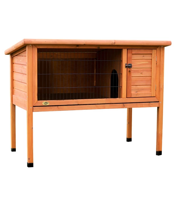Für Kaninchen, die im Freien gehalten werden, ist der Holzstall Natura VI der ideale Ort. Das stabile Kiefernholz wurde lasiert und bietet Schutz vor Wind und Wetter. Das mit Teerpappe gedeckte Klappdach schützt zusätzlich vor Regen. Besonders praktisch ist der herausnehmbare Schubladenboden mit Kunststoffwanne – so wird die Reinigung im Kaninchenstall zum Kinderspiel.