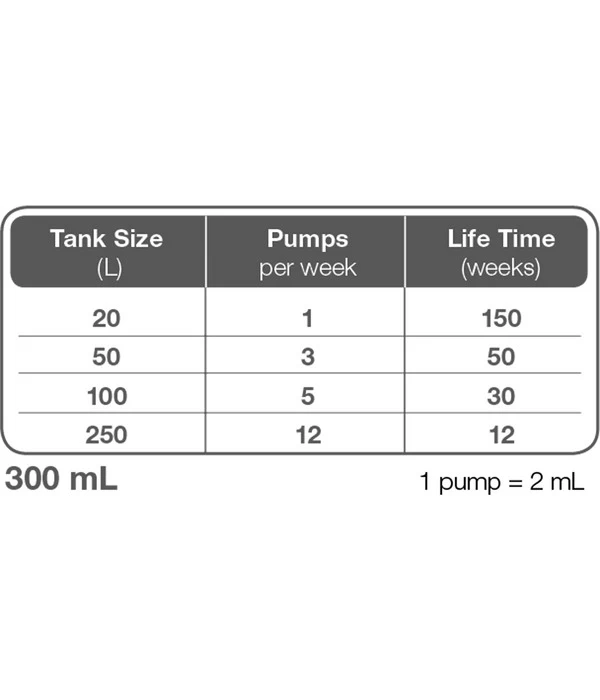 Was den Tropica Flüssigdünger für Aquarienpflanzen noch so besonders macht? Die praktische Dosierkammer, die Ihnen eine präzise Dosierung ermöglicht: Ein Pumpenhub entspricht etwa 1 bis 2 ml. Tropica verspricht, dass eine einzige Flasche Aquarienpflanzendünger für 2.500 Liter Aquarienwasser ausreicht – so viel fasst etwa ein großer Müllcontainer! Wir empfehlen, dass Sie ca. 5 ml Aquariumpflanzendünger auf 50 Liter Wasser geben. Dabei ist jedoch der tatsächliche Bedarf Ihrer Unterwasserpflanzen zu berücksichtigen: So weisen beispielsweise gelbe Blätter oft auf einen Nährstoffmangel hin. Der sehr ergiebige Tropica Flüssigdünger für Aquarienpflanzen sollte jede Woche in Verbindung mit dem Wasserwechsel zugegeben werden.
