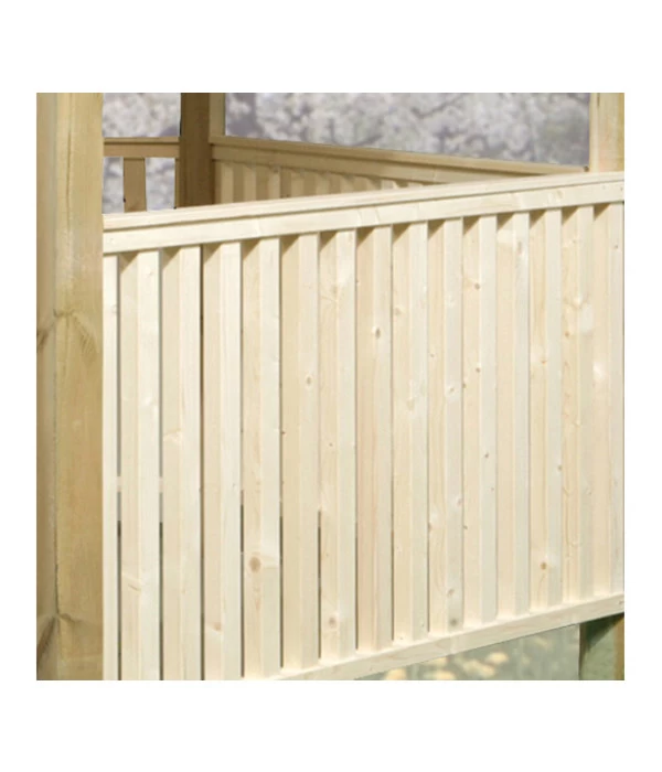 Wünschen Sie sich einen Gartenpavillon, den Sie ganz nach Ihren Vorlieben gestalten können, ohne ihn mühselig selbst konstruieren zu müssen? Dann sei Ihnen die Gartenoase von Weka ans Herz gelegt. Dieser Pavillon lässt sich nämlich wunderbar nach Ihren individuellen Bedürfnissen gestalten. Das formschöne Brüstungsgeländer-Set passt zur Gartenoase 651 bzw. zur größeren Variante 651 A. Es ist beispielsweise zu empfehlen, wenn Sie den Pavillon erhöht oder neben einem Teich platzieren. Zudem bietet das witterungsbeständige Geländer aus kesseldruckimprägniertem Massivholz einen gewissen Sichtschutz für mehr Privatsphäre in Ihrem Garten. Das Set besteht aus drei Teilen, sodass Ihr Pavillon auf einer Seite für den Eingang geöffnet bleibt. Fünf Jahre Garantie bekräftigen die hohe Qualität des in Deutschland hergestellten Produkts. Zögern Sie nicht lange und ergänzen Sie Ihre Gartenoase ideal mit dem Brüstungsgeländer von Weka.