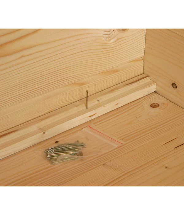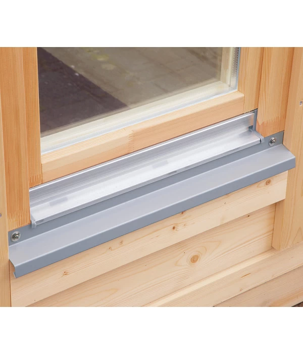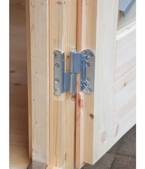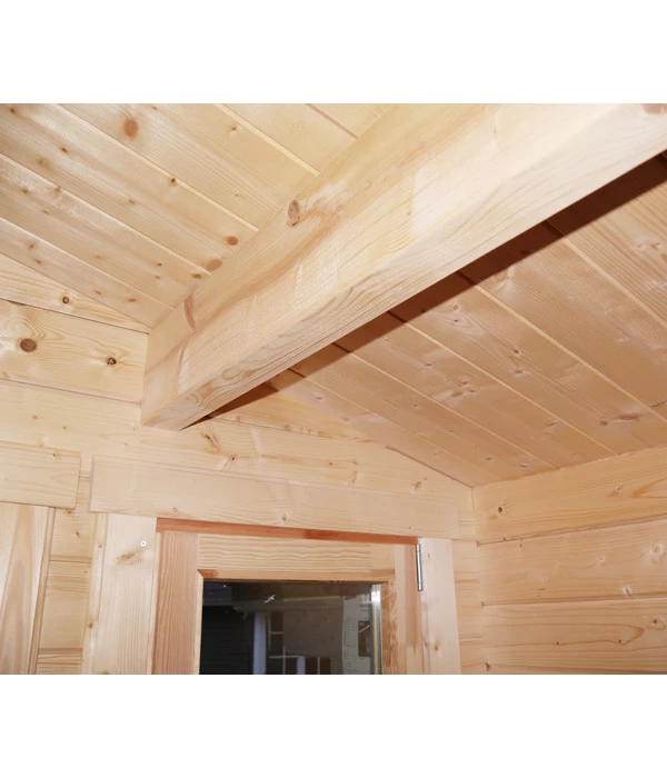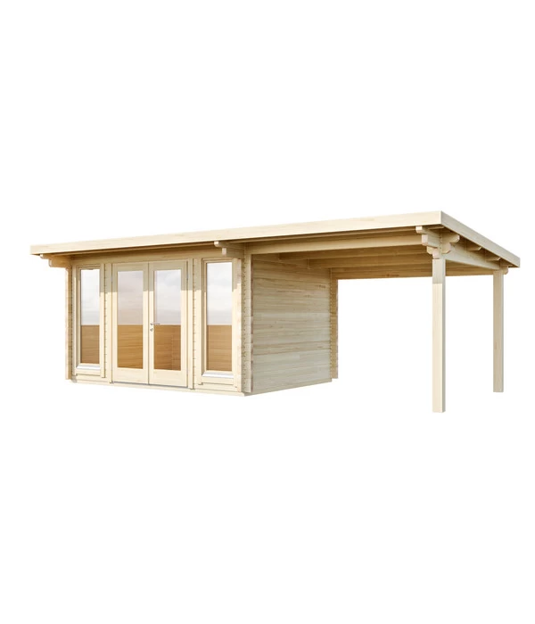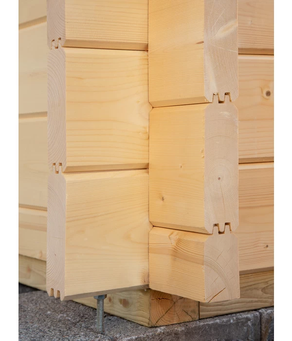 Dank seiner robusten Bauweise aus Fichtenholz mit 70 mm starken Wandbohlen schützt Sie das Material im Sommer wie auch im Winter vor extremen Temperaturen. Mit einer zusätzlichen Heizquelle lässt sich das Holzhäuschen so das ganze Jahr optimal nutzen. Ergänzt wird das Design durch zwei bodentiefe, isolierverglaste Fenster an der Frontseite, die zum einen für ausgewogene Temperaturen und zum anderen für viel Licht und einen schönen Ausblick sorgen. Das Gartenhaus ist nicht nur für gemütliches Beisammensein oder für entspannte Stunden wie geschaffen, es stellt auch eine willkommene Alternative zum klassischen Homeoffice mit Blick ins Grüne dar. Die seitliche Überdachung lässt sich ebenso vielseitig einsetzen und bietet sich zudem für rankende Begrünungen an, die eine harmonische und natürliche Ausstrahlung erzeugen.